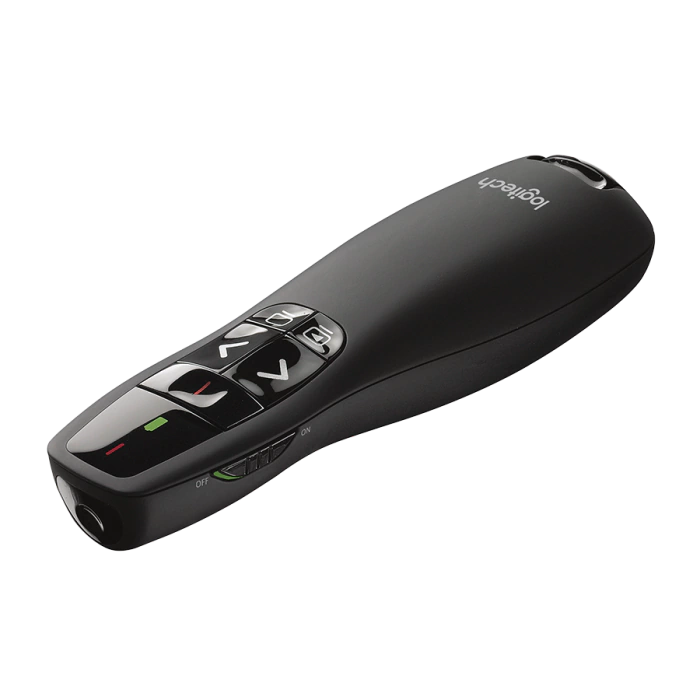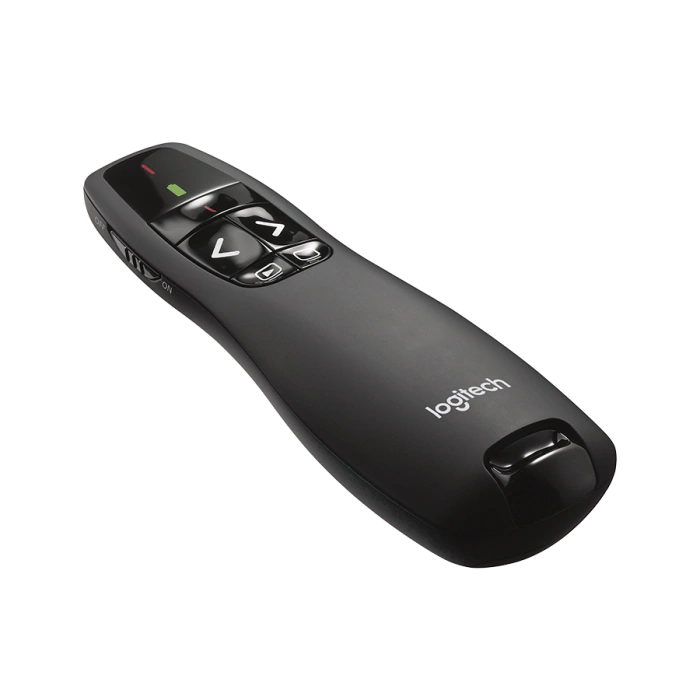 O Logitech R400 é um controle remoto sem fio ideal para apresentações tradicionais, com ponteiro laser vermelho e layout intuitivo de navegação. Opera em frequência 2.4 GHz via receptor USB, com alcance estável de até 15 m, permitindo movimentação segura pelo ambiente. Alimentado por duas pilhas AAA, oferece longa duração — até 20 horas com o laser ativado e 1050 horas no modo de apresentação. Os botões são facilmente localizáveis ao toque, e o receptor armazena-se no próprio controle para transporte prático. Com design ergonômico e sem necessidade de instalação de drivers, o R400 é uma escolha confiável e acessível para apresentações rápidas e eficazes.