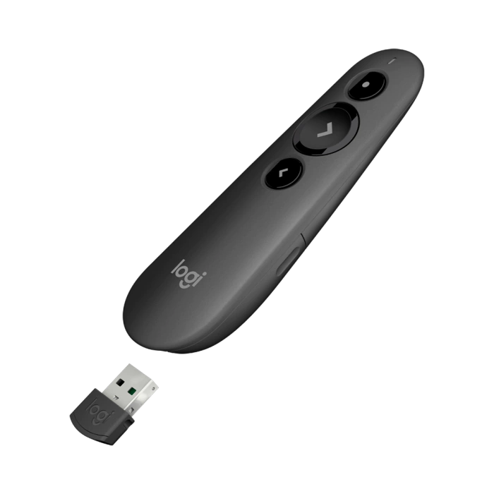 O Logitech R500s é um controle remoto para apresentações sem fio, projetado para oferecer controle preciso e segurança em cada slide. Equipado com um laser vermelho de Classe 1, permite destacar detalhes da tela com brilho visível, mesmo em ambientes claros. Oferece conectividade dupla via receptor USB 2.4 GHz ou Bluetooth Low Energy, com alcance de até 20 m, garantindo liberdade de movimentação. A bateria AAA proporciona até 12 meses de uso e, ao se esgotar, desativa o laser para estender o tempo de uso. O design compacto e anatômico encaixa-se confortavelmente à mão, com botões posicionados para navegação intuitiva de slides. Suporta customização de funções, monitoramento de bateria e timer na tela, via aplicativo Logi Options+.