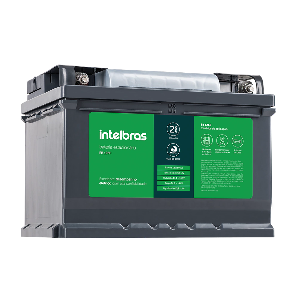 Indicada para profissionais que buscam soluções eficientes e duradouras, a bateria elétrica estacionária EB 1260 mantém o padrão Intelbras de qualidade e segurança.