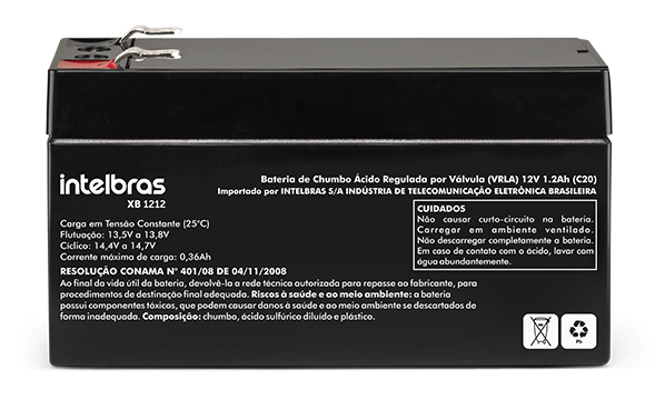 A bateria suporta ciclos frequentes de carga e descarga, mantendo desempenho confiável em diferentes condições ambientais e garantindo longa vida útil. A qualidade Intelbras assegura conformidade com padrões nacionais e internacionais de segurança e eficiência.