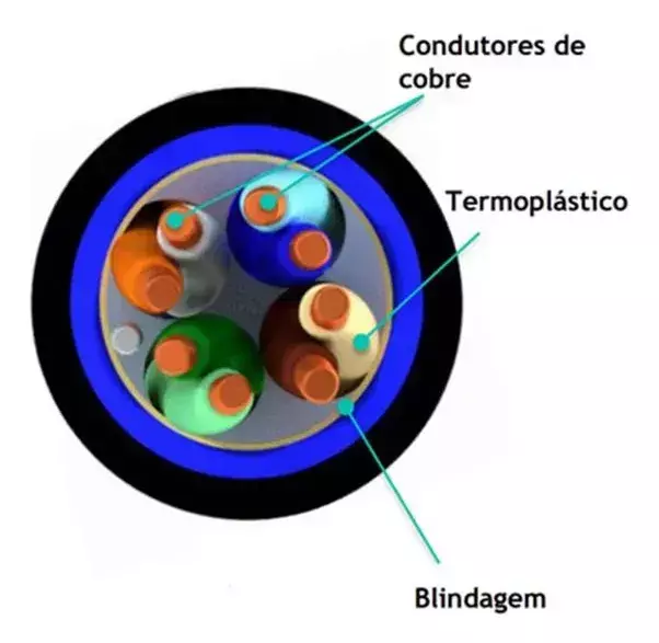 Tipo de cabo F/UTP (blindagem aluminizada com condutor dreno)