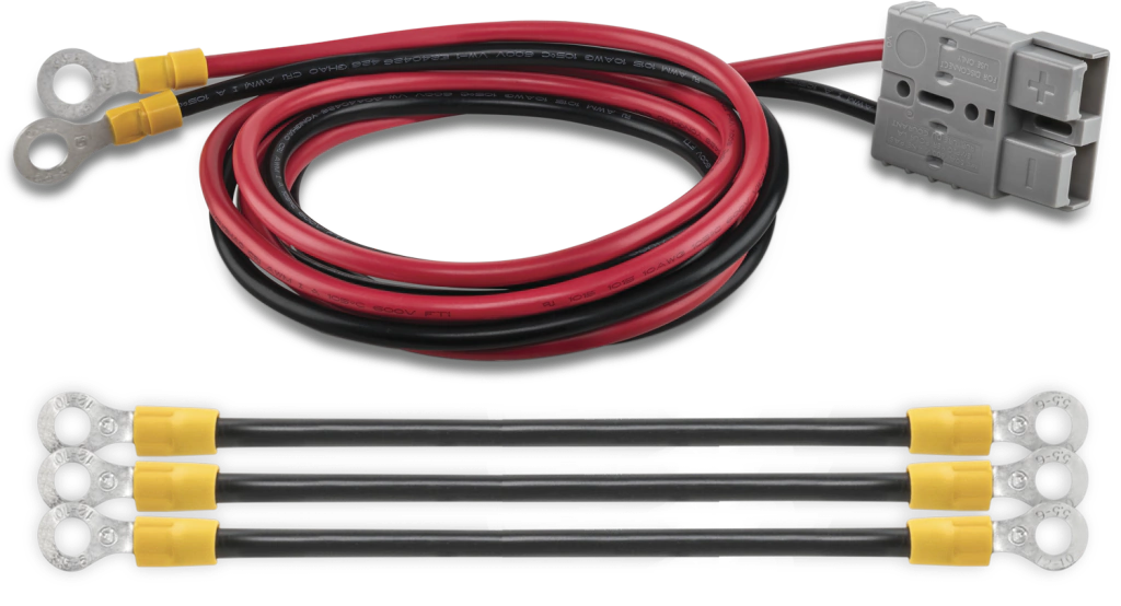 O cabo de engate rápido CBO 603 facilita a conexão de baterias externas em nobreaks, eliminando a necessidade de ferramentas ou processos demorados. Com o conector SB 50 padrão Anderson, basta encaixar o cabo principal na saída do nobreak e fixar os terminais tipo olhal de 8 mm nas baterias, garantindo contato seguro e estável. O conjunto inclui três cabos de série para interligação em diferentes configurações de tensão, permitindo expandir o banco de baterias conforme a demanda de autonomia.