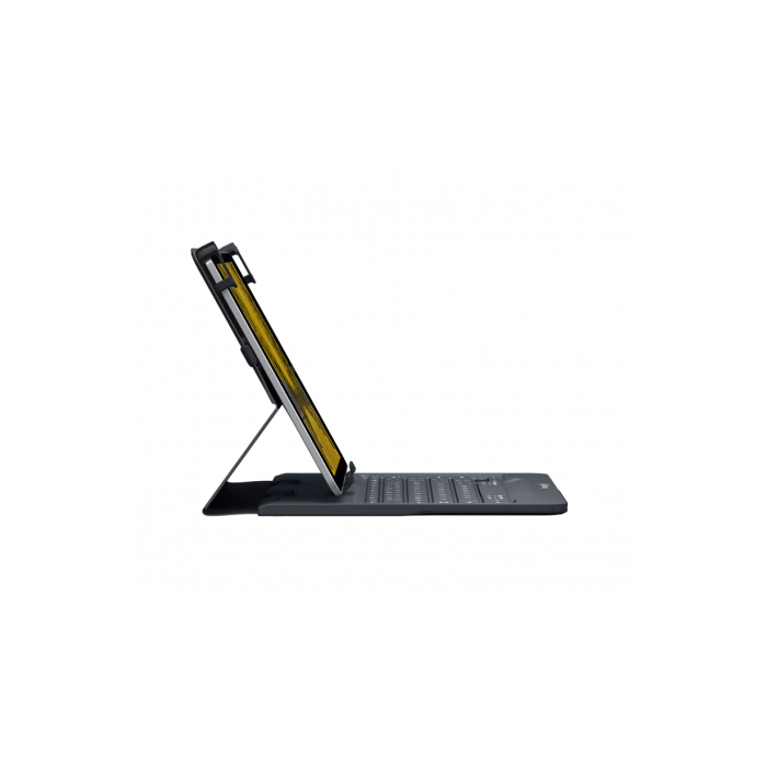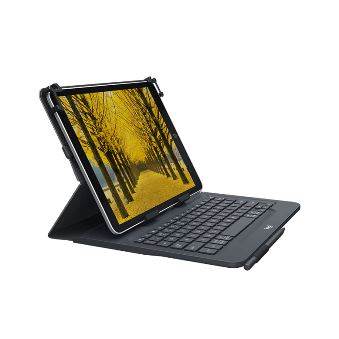 O Logitech Universal Keyboard Folio é uma capa com teclado integrada, projetada para oferecer proteção e produtividade em tablets de 9 a 10 polegadas. O teclado físico de membrana possui teclas bem espaçadas para digitação confortável e precisa, com atalhos dedicados para funções comuns. A capa protege frente e verso contra riscos, respingos e impactos leves, mantendo o tablet seguro em diferentes posições de apoio para digitação ou visualização. Conexão via Bluetooth simplifica o emparelhamento com diversos dispositivos, compatível com iOS e Android. É uma solução prática para transformar o tablet em uma estação de trabalho portátil.