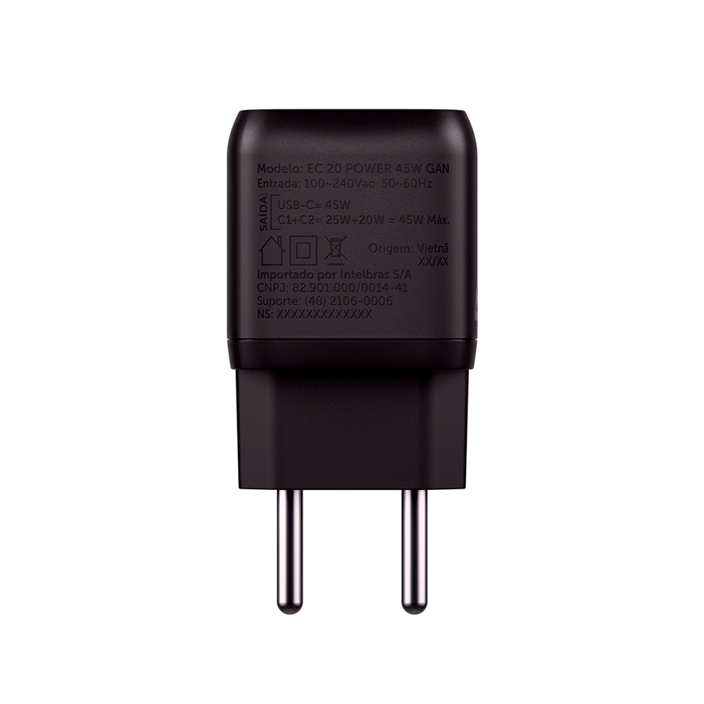 O carregador turbo EC 20 45W Power da Intelbras oferece carregamento rápido para dispositivos USB-C com potência de até 45W. Com tecnologia Power Delivery, adapta a saída conforme o dispositivo, garantindo eficiência e segurança na recarga de smartphones, tablets e notebooks compactos.