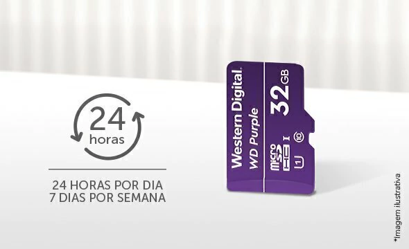 Os cartões microSD Purple são dispositivos de armazenamento não-volátil de dados a base de semicondutores, desenvolvidos baseado em três gerações de cartões industriais, ele é ideal para gravações de câmeras de vídeo-vigilância. Possui alta durabilidade, pelo menos 500 ciclos, e grande capacidade de armazenamento. Além disso, conta com a função Health Monitor para verificação da vida útil do cartão. O micro-SD WD Purple é confiável, sua ótima performance possibilita a gravação de som e imagens em alta definição, 24 horas por dia, 7 dias por semana.