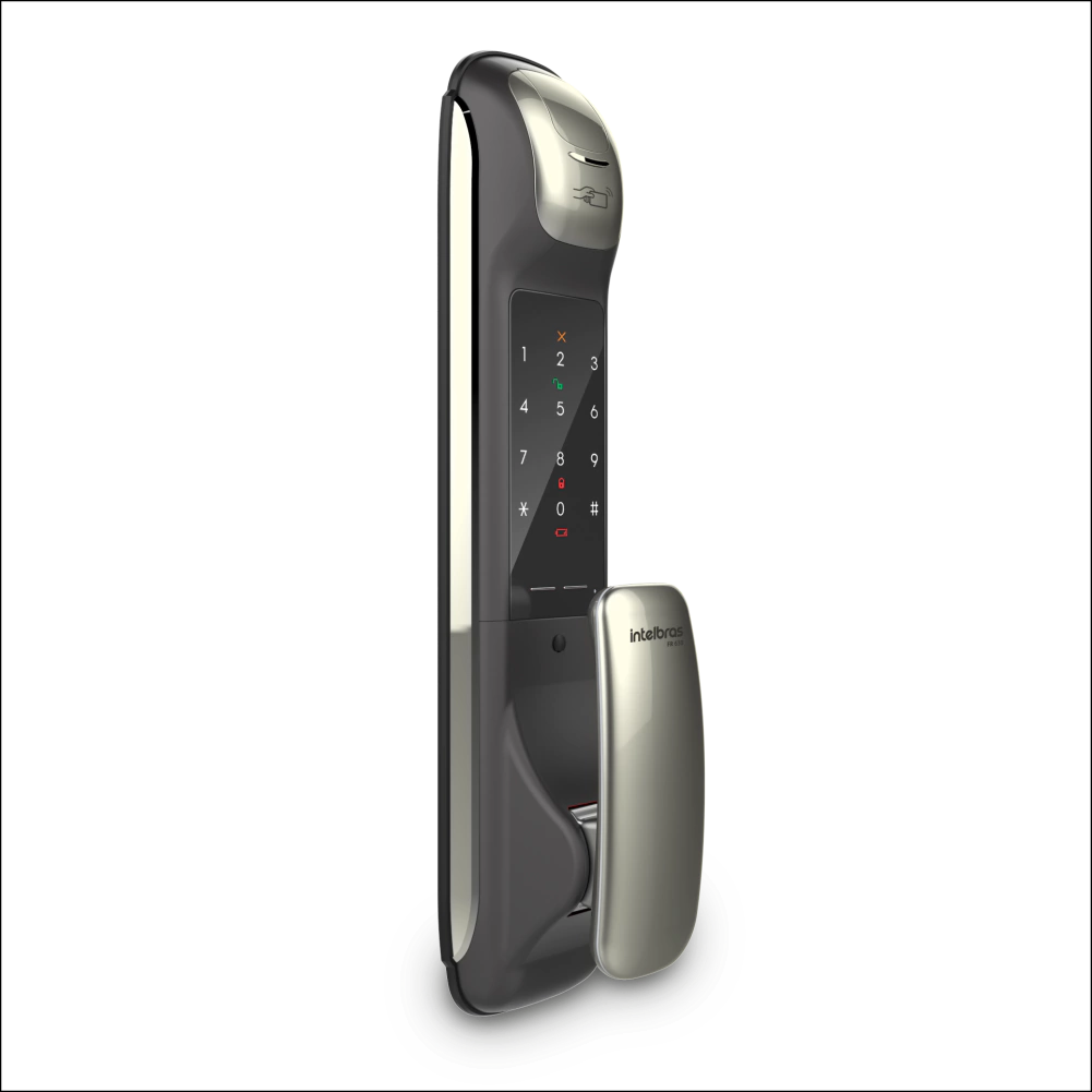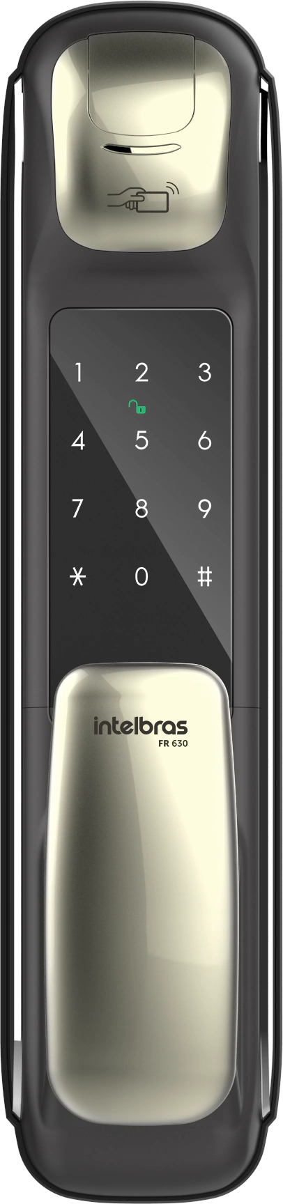 A fechadura digital FR 630 da Intelbras oferece múltiplos métodos de acesso, incluindo senha, cartão RFID 13,56 MHz, biometria digital e chave mecânica de emergência. Com design moderno e acabamento em alumínio escovado, é indicada para ambientes residenciais e comerciais que buscam segurança e praticidade. O teclado touch sensível ao toque possui iluminação para facilitar o uso em ambientes escuros, e a função anti-travamento bloqueia o acesso após tentativas incorretas para aumentar a segurança.