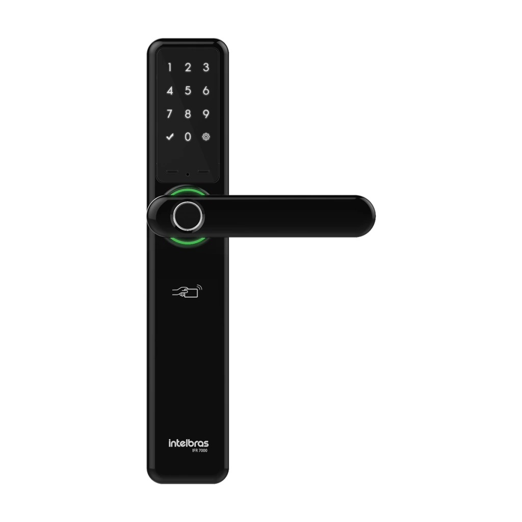 A fechadura inteligente de embutir com maçaneta IFR 7000 da Intelbras combina segurança e conectividade em um único dispositivo. Com cinco modos de acesso — senha numérica, biometria, tag de proximidade, chave física e via app Izy Smart —, ela atende até 100 impressões digitais, 100 tags e 15 senhas de uso diário, oferecendo versatilidade para famílias e equipes de trabalho. O teclado touchscreen iluminado facilita o uso noturno e a função “senha protegida” permite inserir dígitos aleatórios antes ou depois da senha, evitando espionagem por observação.