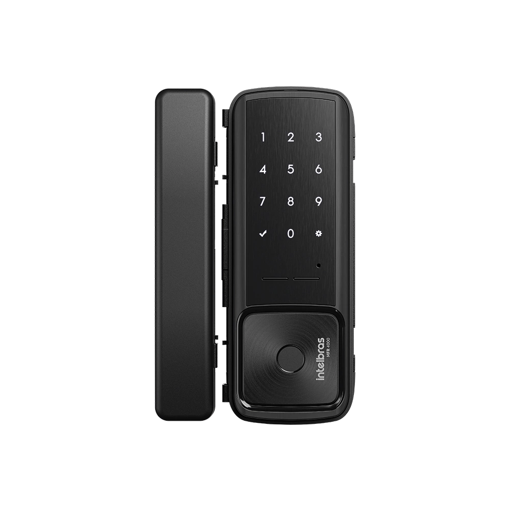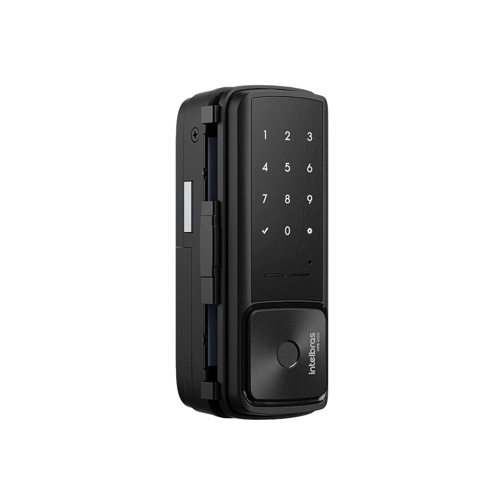 A Fechadura Digital MFR 4000 da Intelbras é uma solução moderna e segura para portas de vidro, oferecendo controle de acesso avançado e integração com sistemas de automação residencial. Projetada para portas de vidro com espessura de 10 mm, é compatível com configurações de uma folha (vidro/alvenaria) ou duas folhas (vidro/vidro), adaptando-se a diferentes necessidades de instalação. A MFR 4000 permite o cadastro de até 100 biometrias digitais e 15 senhas numéricas, proporcionando múltiplas opções de acesso para usuários autorizados. A integração com o aplicativo Mibo Smart possibilita o controle remoto da fechadura, permitindo a abertura e o gerenciamento de acessos à distância. Além disso, a fechadura pode ser integrada a outros dispositivos inteligentes da casa, criando cenários personalizados e automatizando tarefas cotidianas. A função de travamento automático assegura que a porta seja trancada assim que fechada, aumentando a segurança do ambiente. Já a função "Não Perturbe" desabilita temporariamente a abertura externa, garantindo privacidade quando necessário. A alimentação é realizada por 4 pilhas AA, com duração média de 10 meses considerando 10 acessos diários. Em caso de esgotamento das pilhas, a fechadura possui uma entrada para alimentação de emergência, permitindo o uso de uma bateria de 9V para acesso temporário. A instalação é simples e não requer furações ou alterações significativas na estrutura da porta, preservando a estética do ambiente. Para usufruir de todas as funcionalidades de controle remoto e integração com outros dispositivos inteligentes, é necessário adquirir separadamente o hub de automação Mibo.