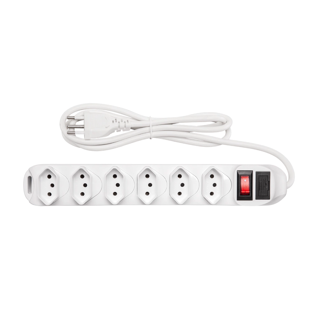 O protetor eletrônico EPE 1006 da Intelbras oferece seis tomadas e quatro portas USB, combinando múltiplas opções de energia em um único equipamento. Ideal para home office e salas de reunião, ele protege computadores, monitores e dispositivos móveis com duplo sistema: varistor para surtos de tensão e disjuntor térmico contra sobrecarga. O espaço entre as tomadas facilita o uso simultâneo de plugs grandes e adaptadores de telefone.
