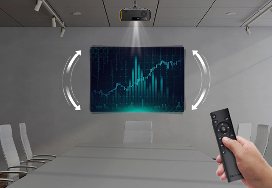 Através do controle remoto, posicione com muita praticidade as imagens de 40” a 150” no ângulo correto, sem necessidade de movimentar o projetor.
