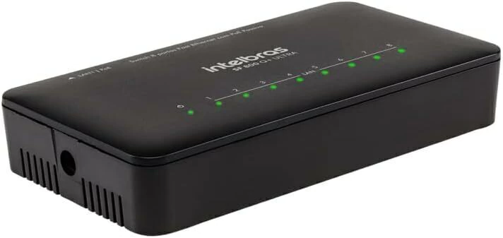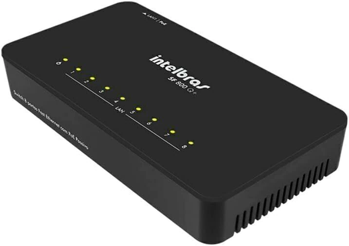 O Switch SF 800 Q+ possui 8 portas Fast Ethernet 10/100 MBps para compartilhamento de internet com os dispositivos conectados. O Switch possui a função QoS para priorização do tráfego de dados, voz e vídeo e sua porta LAN 1 possui suporte a PoE Passivo para alimentação do switch através do cabo de rede.