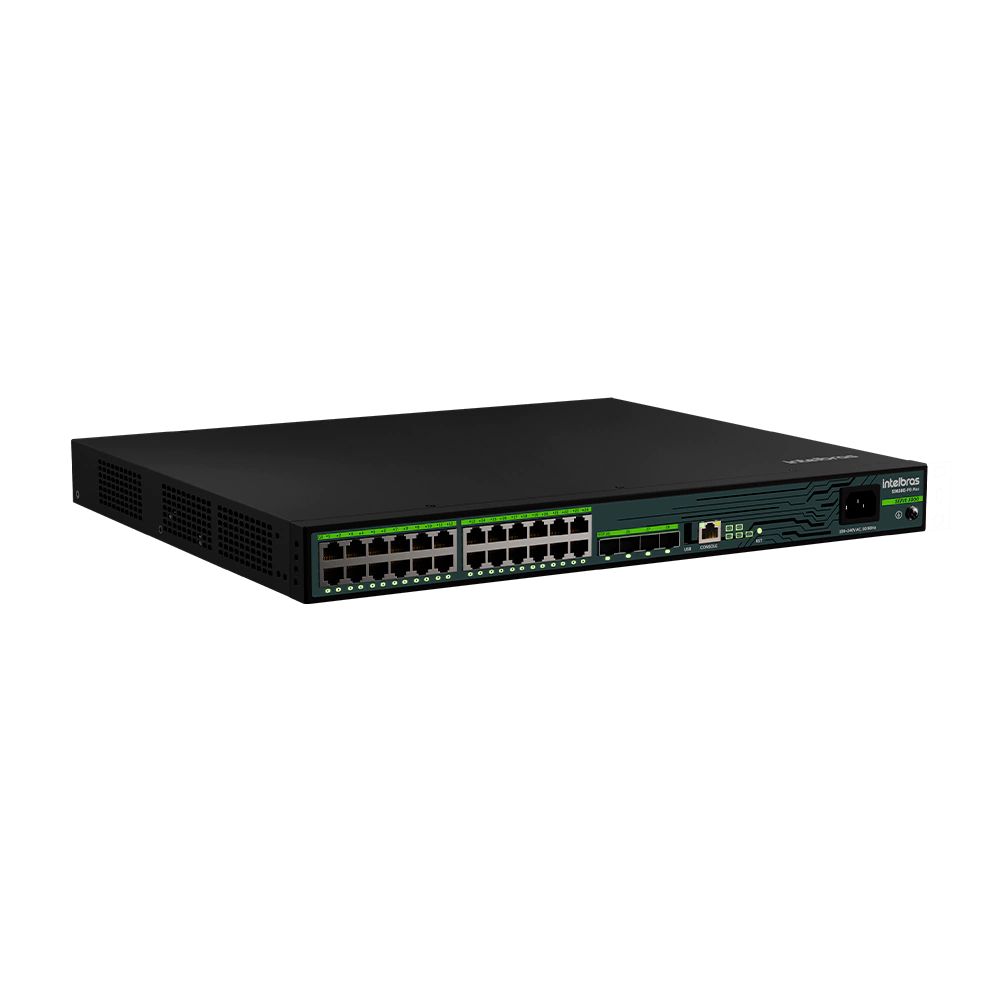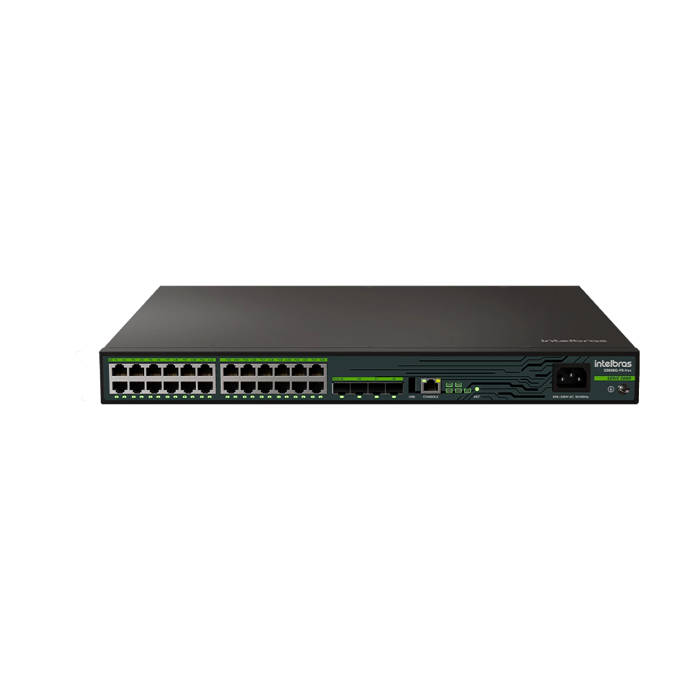 O switch gerenciável S3028G-PB Max da Intelbras é um equipamento de alta performance com 28 portas Gigabit Ethernet, incluindo suporte a PoE+ para alimentação de dispositivos IP, ideal para redes corporativas que exigem controle avançado, alta velocidade e confiabilidade.