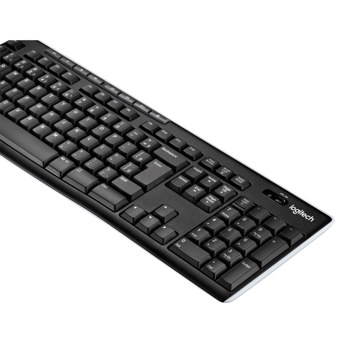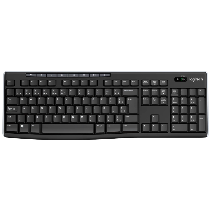 O Logitech K270 é um teclado sem fio completo, com layout ABNT2, ideal para ambientes residenciais e profissionais. Oferece conexão via receptor USB Unifying de 2,4 GHz com alcance de até 10 m, sem atrasos ou interferências. Possui teclas de perfil alto com resposta agradável, além de 8 teclas de atalho multimídia para acesso rápido a funções como internet, e-mail, volume e reprodução. É resistente a respingos para maior durabilidade, com acabamento UV que evita desgaste nas teclas. A bateria (2 pilhas AAA) dura até 24 meses, com chave liga/desliga e sistema de economia de energia inteligente. Construído com 38% de plástico reciclado pós-consumo, o K270 oferece uma experiência de digitação confiável, durável e sustentável.