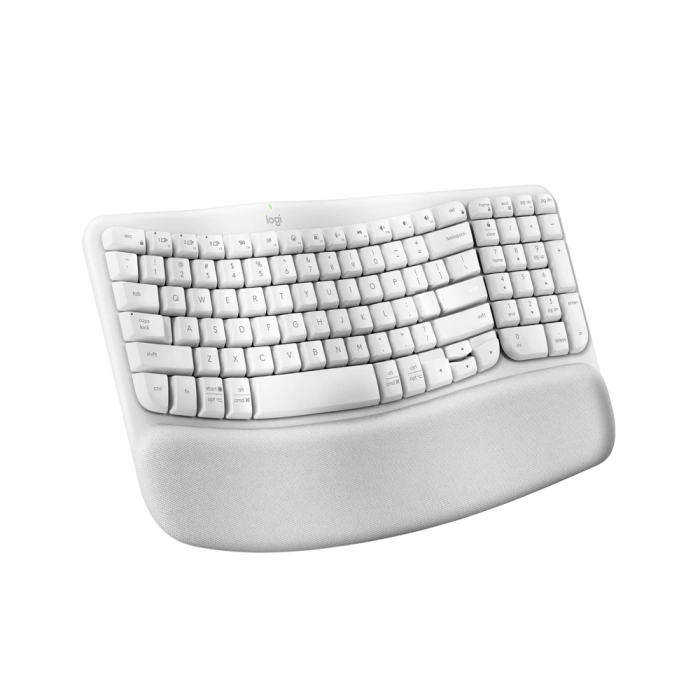 O Logitech Wave Keys é um teclado sem fio ergonômico que prioriza conforto e produtividade. Seu design exclusivo com curvatura em "onda" posiciona naturalmente os dedos, reduzindo a tensão durante a digitação. O apoio de mão acolchoado com espuma viscoelástica melhora o suporte e minimiza a fadiga em longas sessões de trabalho. Conta com conectividade dupla, permitindo conexão via receptor USB Logi Bolt ou Bluetooth LE, com alcance de até 10 metros. Compatível com Windows, macOS, ChromeOS, iPadOS e Android, pode ser emparelhado a até três dispositivos simultaneamente, alternando entre eles facilmente com a função Easy-Switch. As teclas de perfil baixo proporcionam digitação silenciosa e precisa. A autonomia da bateria chega a 36 meses com duas pilhas AAA. Produzido com até 61% de plástico reciclado, une ergonomia, desempenho e sustentabilidade.
