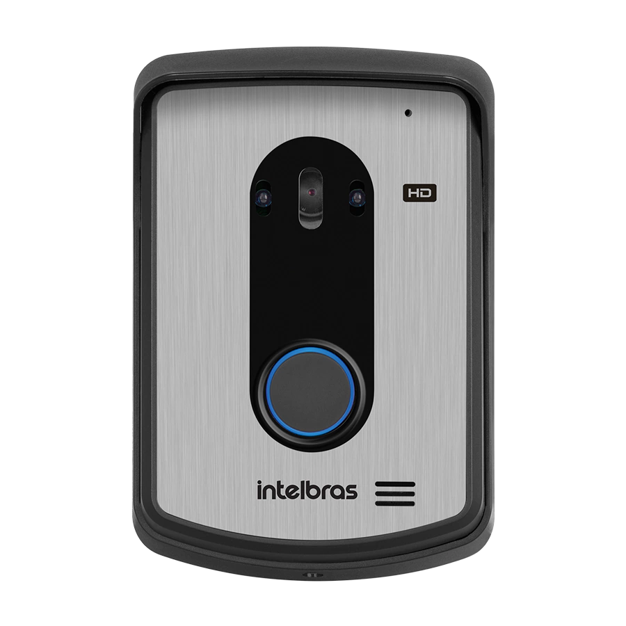 O módulo externo possui proteção IP65 contra intempéries, ideal para instalação em ambientes externos, enquanto o módulo interno traz interface intuitiva para atendimento e controle de acesso. A comunicação ocorre via rede IP, possibilitando monitoramento e liberação remota pelo smartphone via aplicativo Intelbras, além da integração com sistemas de automação.